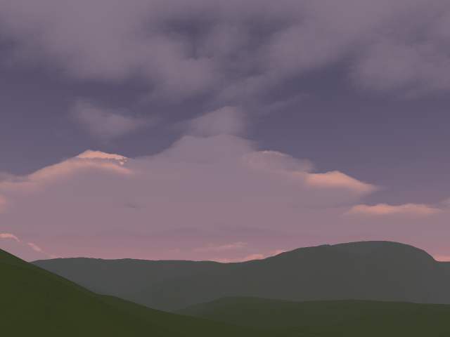 | Another one of my favorites. I was attempting a peaceful, grassy, open setting that just looked . . . calm. It turned out OK, I guess. The grass got butchered by the compression, though, and the clouds, again, seem a bit flat on the bottom. |