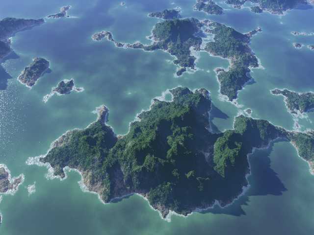 | I know, its more of a Pacific island, hardly a rocky looking island. I think I was going for that cliche, Pacific movie-type island look. It was crafted for the Terracon Islands contest. This is another one of my favorites. |