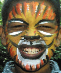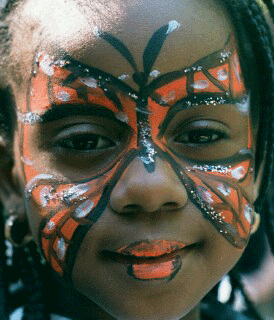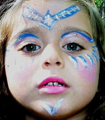I use only the Finest (expensive too) theatrical non-allergenic water-based Face Paint makeup, it is easily removed with soap and water. I have hundreds of original and classical designs to choose from. Designs include Mystical princesses, Tropical butterflies, Spiderman, Batman, Ninja Turtles, Blues Clues, Pokemon, Brave warriors, Rainbows, Wrestlers, rock Stars, aliens, Tigers, Lions, and panda Bears. Oh My!!!!!!!!!