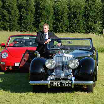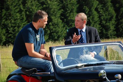 'Wedding Car.co.uk' were called upon in the summer to supply a Triumph Roadster for Norwegian TV channel TV2. They wanted to film an interview with John Nettles on the set of Midsomer Murders. John used to drive a Triumph Roadster around Jersey in the old TV detective series 'Bergerac' so this car proved to be the perfect prop!