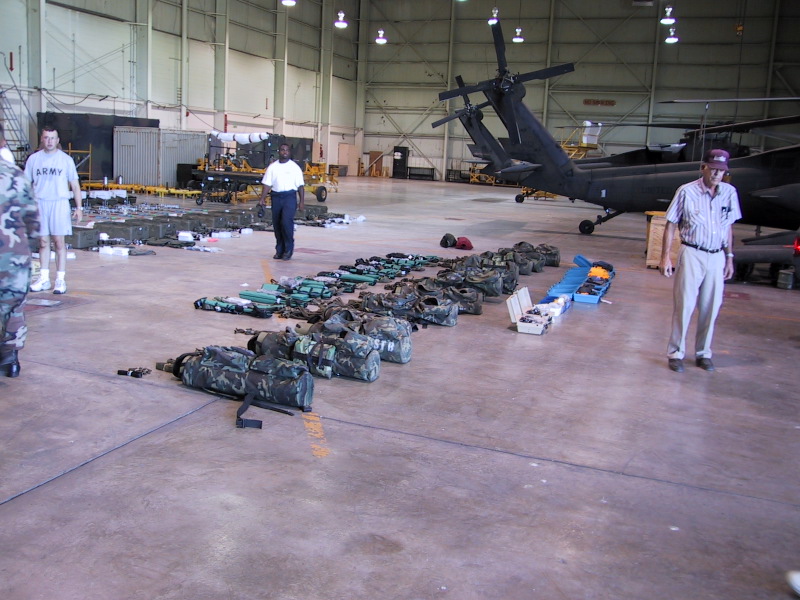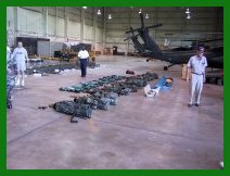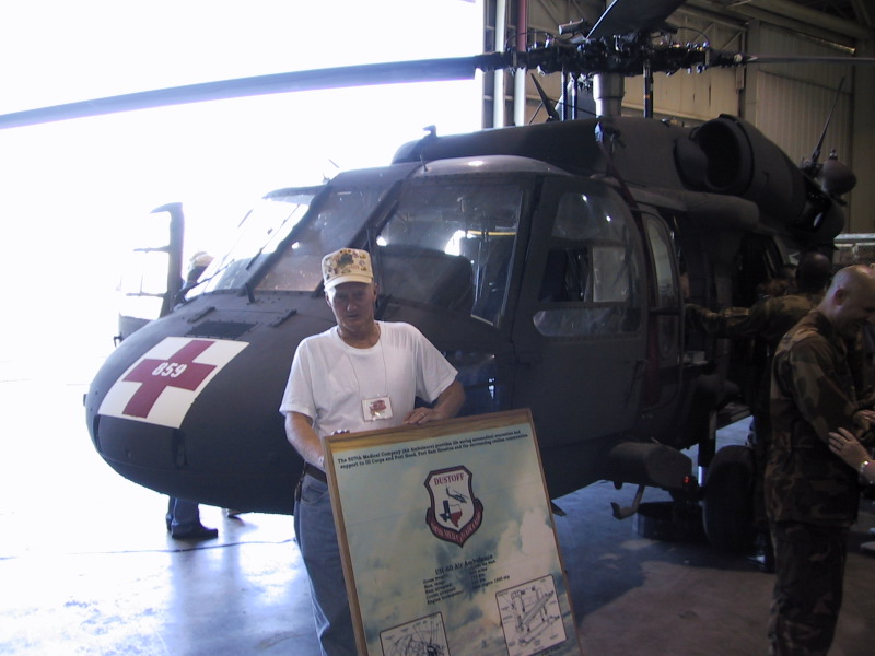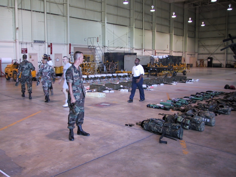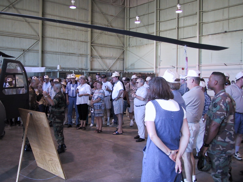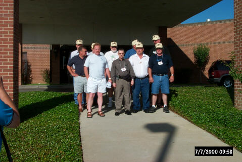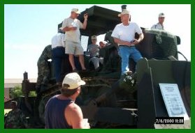 | Thursday, 6 July 2000 ~ Above Eight Pictures 0815 ~ Bus departs for tour of MEDEVAC Helicopter Display, then Motor Pool Road and HSC/A Motor Pool and visit Equipment Display. Can you guess where most of the men went? |