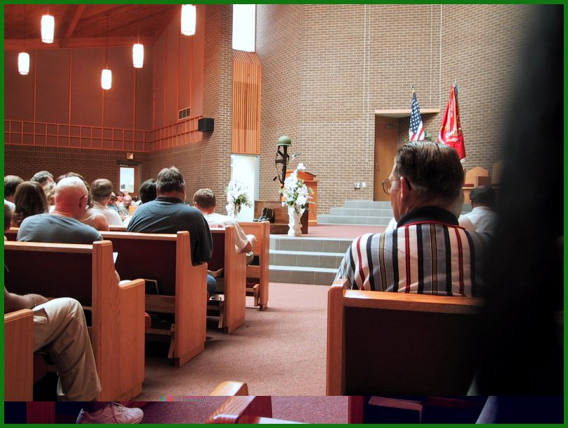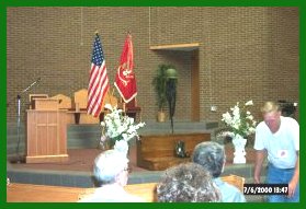 | Thursday, 6 July 2000 ~ Above Four Pictures 1215 ~ Bus to Post Chapel for Memorial for our KIA's and our men who have passed away since the last reunion |