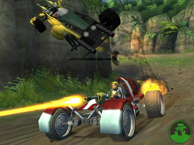 The Jak series continues but the series has changed dramatically. The platforming series has turned to cart racing. Why does Naughty Dog always make a cart racing game after they have completed a couple games in a series? Back to Jak X. This cart racer is different than most. It continues the darker tones from the last two games of the series. All the vehicles are packed with heavy firepower to destroy your opponents. The story takes place after the third game as our heroes are forced to compete in a racing tournament. There are over 100 missions including standard racing, death matches, time trials, and more. There are ten tracks with twenty different configurations. Your car can be customized with new parts, decals, paint jobs, and even goofy accessories like fuzzy dice. You can upgrade your engine, brakes, etc. too. When your car takes too much damage it will start to fall apart. One of the best features is online play. You can compete against five other people online. Jak X doesn't seem like a typical cart racer. With it's realistic approach this game could bring new life to the cart racing genre. Jak X will hit the PS2 in November of this year.