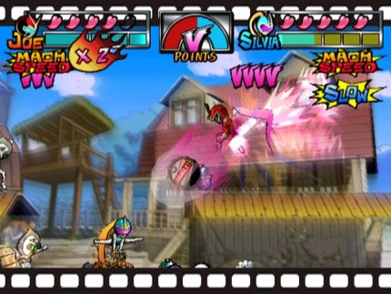 What happens when you mix Viewtiful Joe and Super Smash Bros? You get Viewtiful Joe VFX Battle. Captain Blue wants to make another action packed movie but he doesn't know who should be the lead role. He decides to have everyone face one another to see who the best fighter is. You can use many different characters including Joe and Silvia. There are two types of gameplay co-op and player vs player. In co-op you team up with someone to beat up the baddies. In player vs player you fight against the other player to prove who is a better fighter. All your favorite moves are back with several new ones added. You can also throw other enemies and background objects at the other players. You can get your fight on at a later date.