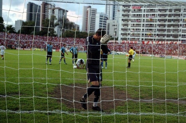 03´- O Náutico explora a velocidade pelo lado direito. Os pernambucanos pressionam o Grêmio. Bola levantada na área gremista, Galatto tira de soco.