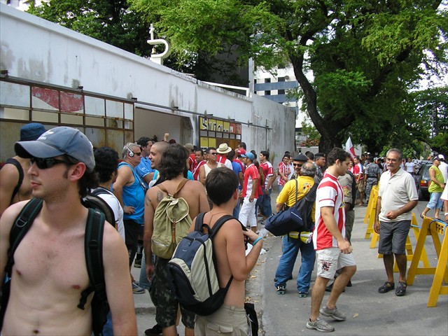 8h30 – Sem ser perturbada por foguetórios durante a noite, a delegação gremista mais uma vez acordou cedo neste sábado, dia da decisão. Depois do café da manhã no hotel Gavoa, o grupo seguiu de ônibus até o Hotel Dorisol, na Praia da Piedade, em Recife, onde ficará hospedado até o retorno à Porto Alegre.