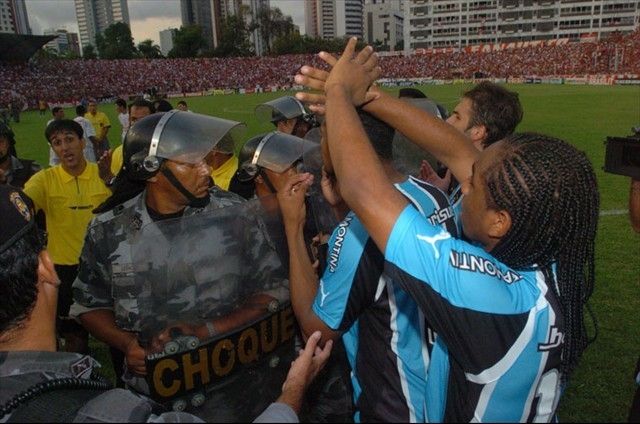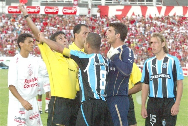 Momento após Patrício dar um "peitaço" no ÁrbitroDia 26/11 é o dia da Garra Gremista