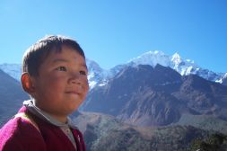 Estan dando una clase a los mas pequeños. Una docena de pequeñas caritas se iluminan al vernos entrar, pero hay una carita que me llama mas la atencion que las demas. Pertenece a una niña de 4 años, de piel oscura y ojos rasgados. Tiene el pelo corto, negro y brillante. La niña viene a mi, lenta pero confiada. Su cabecita apenas llega a mis caderas, me tiende las manos y rompe el silencio del momento con una sola palabra nacida clara y alta desde sus labios infinitos: Mama?. Miro a Prabin sin comprender. Prabin me explica, no tiene padres, esta es de las mas pobres, la envian del orfanato todas las mañanas.