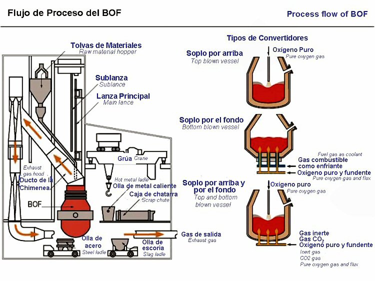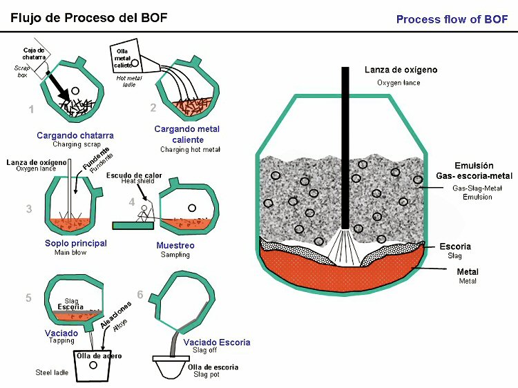 the mouth of the cylindrical BOF. The hot metal is immediately