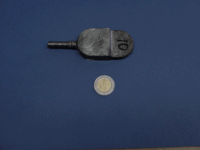 La situación inicial del estado inclusionario se evaluó en la muestra obtenida en la estación de Ar, la cual se extrajo justo en al momento en que la olla dejaba tal estación para partir hacia la estación de tratamiento. A fin de obtener información acerca del estado inclusionario antes del tratamiento de modificación química de inclusiones se obtuvo una muestra en el horno olla antes de la adición de CaSi. El cambio en la naturaleza química de las inclusiones por efecto del tratamiento de modificación, fue evaluado en muestras obtenidas minutos después de la adición de CaSi. A fin de obtener información de las características del estado inclusionario antes de la solidificación se obtuvo una muestra en el molde de la colada continua después de ser vaciadas 40 ton. Además el estado inclusionario se analizó en el producto laminado para conocer las características finales. Las muestras de metal líquido se obtuvieron por duplicado, una para análisis químico del acero y otra para la caracterización del estado inclusionario. La obtención de las muestras de acero líquido se realizó mediante la introducción en el baño líquido de cartuchos comerciales; el metal líquido se succiona a través de cartucho y solidifica en un molde metálico. La Fig. 2 ilustra una muestra solidificada obtenida durante la refinación secundaria. Para la muestra de producto laminado se seccionó transversalmente un segmento de lámina y se obtuvo una muestra de aproximadamente 2-3 cm de longitud.