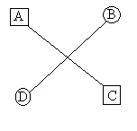 With this pattern you can spice it up if each juggler changes count every 12 beats. Now try A and C juggling two count and B and D juggling pass pass self. The table of passes for this pattern is below:
