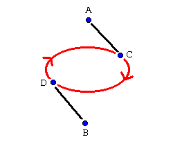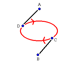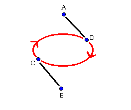 ambulant diagram Four Person Benzene RingThis is a pattern for four jugglers A, B, C and D. It can be juggled on a four count or a three count (much faster). A and B feed C and D, who run around each other in the middle. On the first pass A passes with C and B passes with D. This is shown below: ![]() After the first pass, C turns to pass with B and D turns to pass with A. A and B's first passes should be long to help C and D to turn. The second pass is shown below: ![]() After the second pass, C and D move right and make their third pass with the same jugglers as the second. This pass is shown in the next diagram: