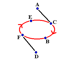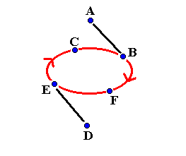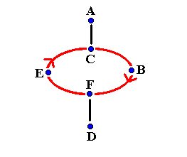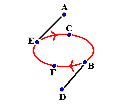 ambulant diagram Six Person Benzene RingThis is a classic pattern for six jugglers. A and D do a typewriter feed on two count to three positions in front of them. B, C, E and F run around each other in the middle passing on four count. On the first pass A passes with B and D passes with E. C and F do selfs. This is shown below: ![]() After the first pass, B and E turn to make their next pass. A and D's first passes should be long to help B and E to turn. Meanwhile on the second pass A passes with C and D passes with F. B and E do selfs. This is shown below: ![]() On the third pass A passes with E and D passes with B while C and F do selfs. This is shown in the next diagram: