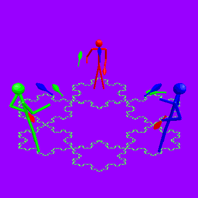 Home magic contents backDouble Three Count FeastThis is similar to a three count feast, but you make two consecutive passes to each juggler instead of one. Each juggler's sequence is pass pass self pass pass self self self self, but they start out of phase. The first of each pair of passes is always a red club, the second is always a green club and everyone has a blue club that's always a self. Also on each pass you exchange the same colour clubs.