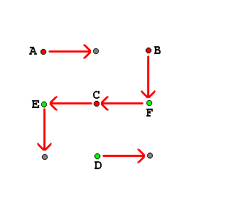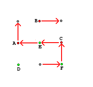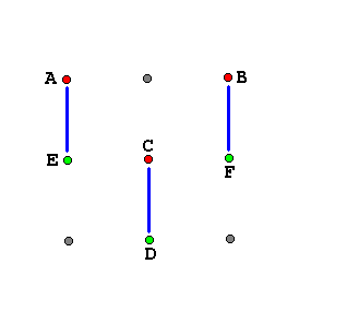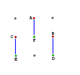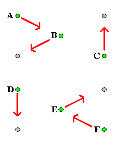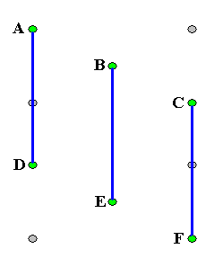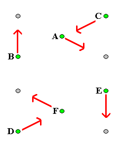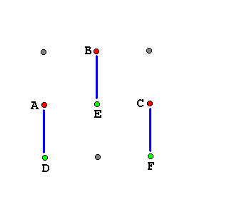 The initial positions are shown below. A passes with D, B passes with E and C passes with F.