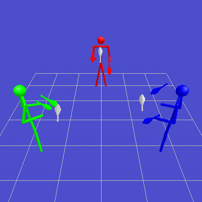 Home magic contents previous nextThree Count FeastEveryone passes on three count. You pass to everyone in turn including yourself. The white clubs are passing clubs and eveyone has two clubs of the same colour which are always selfs. This colouring also works for many other three count triangles.