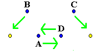 A's next pass is with D while B and C do selfs: