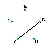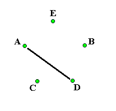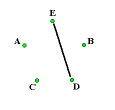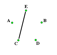 Neutron starThis is another pattern based on a star. Everyone alternates passing four count and six count. (For an ambidextrous pattern everyone alternates passing two count and three count). A starts passing six count first, B starts passing four count first, C starts with four selfs and then starts passing on four count first, D starts with two selfs and then starts passing on four count first and E starts with two selfs and then starts passing on six count first. For the first pass A passes with B: