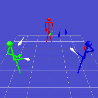 Home magic contents previous nextOne count feedRed feeds on one count, blue juggles pass pass self and green passes three count but starts with two selfs. Red passes red and blue clubs with blue and green clubs with green. Blue and green have white clubs that are always selfs.