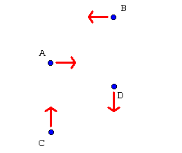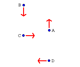 After the second pass, A moves back, B moves forwards, C moves right and D moves left.
