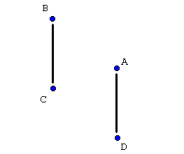 On the second pass, A passes with D and B passes with C. This pass is shown in the next diagram: