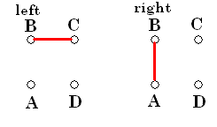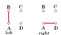 The next feeder, A, is to the last feeder's left. A passes to the left and then to the right: