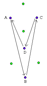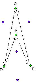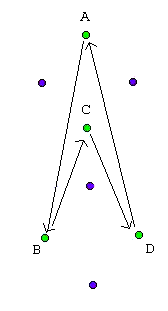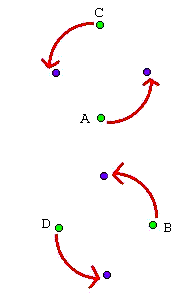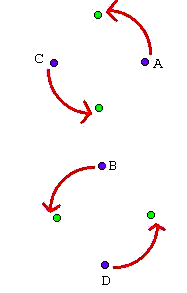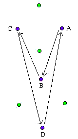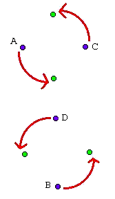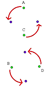 on left hand passes B passes to A, C passes to B, etc., alternatively the