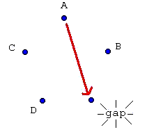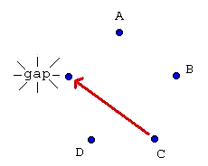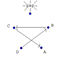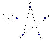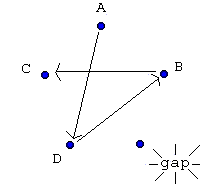 Now B is passing to C and C is no longer passing to A. Also the gap has moved between B and D.