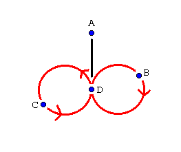 B, C and D continue in their figure of eight pattern. A's next pass is with D: