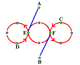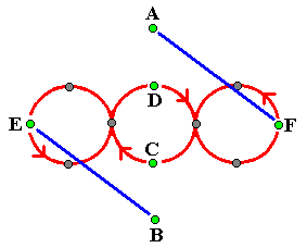 C, D, E and F continue in their figure of eight pattern. A's next pass is with F and B passes with E: