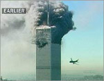 ๐๙.๐๓ น. เที่ยวบิน ๑๗๕ ของสายการบินยูไนเต็ด แอร์ไลน์ บินชนตึก เวิร์ลด์ เทรด เซนเตอร์ อีกหลัง เกิดการระเบิดและไฟใหม้