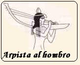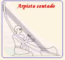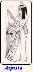 De los instrumentos de cuerda, sin duda, el más importante fué el arpa. Durante el Imperio Medio se hizo usual representar en las moradas de eternidad a un arpista, que generalmente era ciego. Compensaba su falta de visión con un excepcional talento. El arpista tocaba sentado ó de rodillas, ante un dios ó un difunto. La abundancia de testimonios nos dan a entender que gozaban de una gran estima. En la morada de eternidad de Ramsés III aparecen unas arpas con cabeza humana.