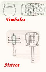 Maat era el orden cósmico, pero la Diosa Merit, mantenía el orden mediante la música. Las primeras representaciones son un legado del Imperio Antiguo, en las que aparecen instrumentos de viento, entre los que había clarinetes ó flauta doble y flauta simple que se tocaba horizontalmente y podía llegar a medir un metro. Podían ser de caña, madera ó metal. En las representaciones de los desfiles militares, vemos trompetas y tambores que se colgaban al cuello.
