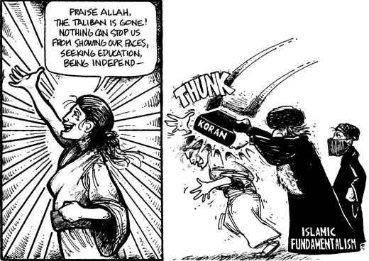 covered from head to foot in black cloth. In countries such as Afghanistan
