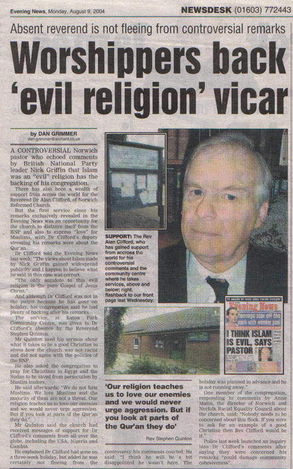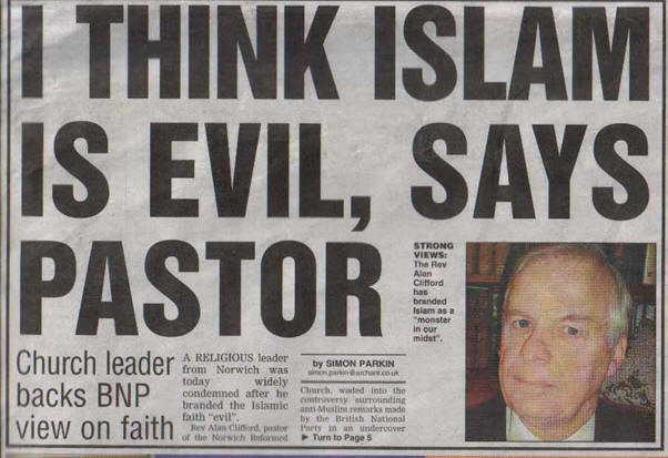 Dr Clifford today told the Evening News he stood by his decision to align his own views about the spread of Islam with those of the BNP.