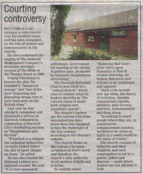 In the Norwich 'Evening News' and the 'Eastern Daily Press', I praise God that
