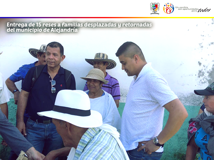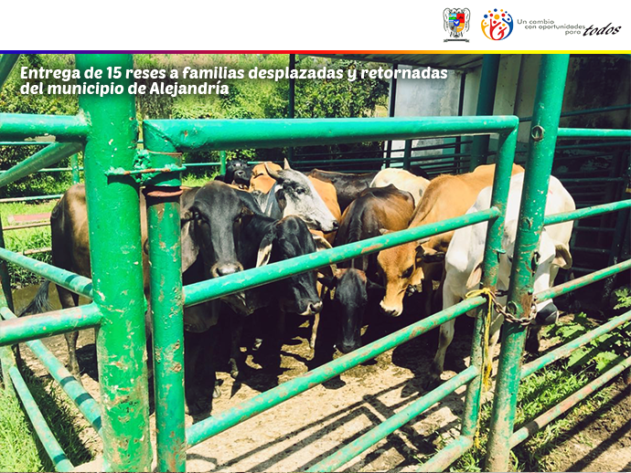24 de Enero de 2018 | Gracias a la gestión de la administración Municipal "Un Cambio con oportunidades para Todos" ante la Unidad de Victimas, se entregaron 15 reses cada una de 321 kilogramos aproximadamente a 5 familias desplazadas y retornadas del municipio de Alejandría.