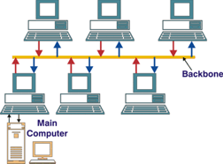 consists of a single central cable (backbone/trunk), to which all computers and