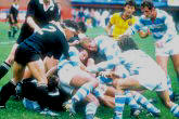la melé. Las filas frontales se enfrentan y conectan de forma que ninguna