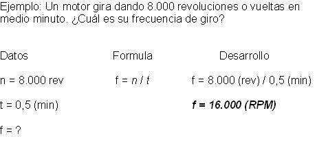 La frecuencia de giro de los motores se mide en RPM, la frecuencia de los discos fonográficos (de vinilo) también se medía en RPM, los había de 45 RPM (discos singles), 33 1/3 RPM (Long Play o LP); y los más antiguos (de acetato) de 78 RPM, es decir giraban dando 78 vueltas por minuto