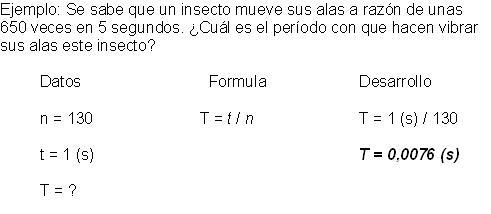Si llamamos n al número de oscilaciones y t al tiempo que demora en completar las oscilaciones, el periodo T se puede determinar a través de la ecuación: