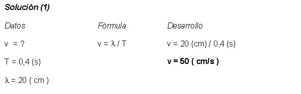 Por lo tanto, para la onda que estamos analizando, se tiene que su rapidez de propagación es: