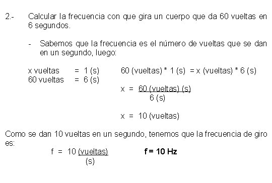 Se mide en: (vueltas/segundo), (revoluciones/minuto), (oscilaciones/segundo), (ciclos/segundo), etc.