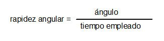 Se llama rapidez angular a la razón entre el ángulo descrito por el radio de posición y el tiempo empleado en describirlo.