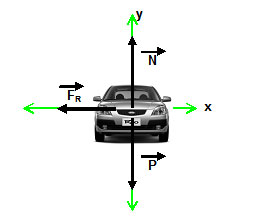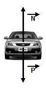 En el eje vertical (y) se pueden observar dos fuerzas: el peso ( P ) del automóvil y la fuerza normal ( N )