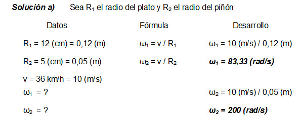 Se tiene una bicicleta en la cual el radio del plato es de 12 cm y el del piñón de 5 cm