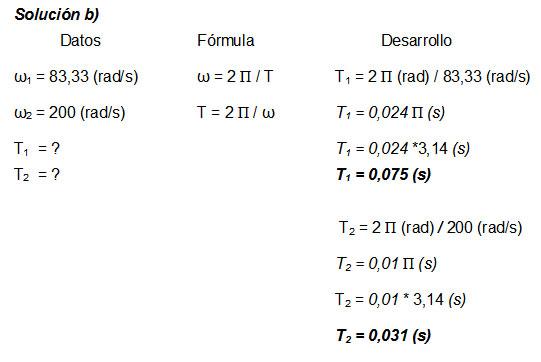 b) el período de giro del plato y del piñón?