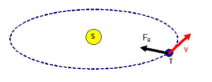 Esta fuerza de atracción gravitacional ( Fg ) es la que proporciona la fuerza centrípeta que obliga a la Tierra a describir su órbita en torno al Sol
