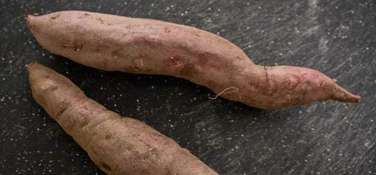 The Japanese yam is unlike a sweet potato in its skin color and flesh. It is roughly oblong in shape with a thin, rusted red colored skin, and a densely textured cream colored flesh. The flesh is dry, starchy and subtly sweet. The skin retains the bitter flavor of the root and it is recommended to peel the potato prior to eating.