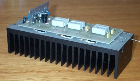 I have included a photo of the prototype amp, fully mounted on its heatsink. For normal use, some brackets would also be needed to mount the heatsink, unless two assemblies were used as the side panels of a conventional (stereo) amplifier chassis.